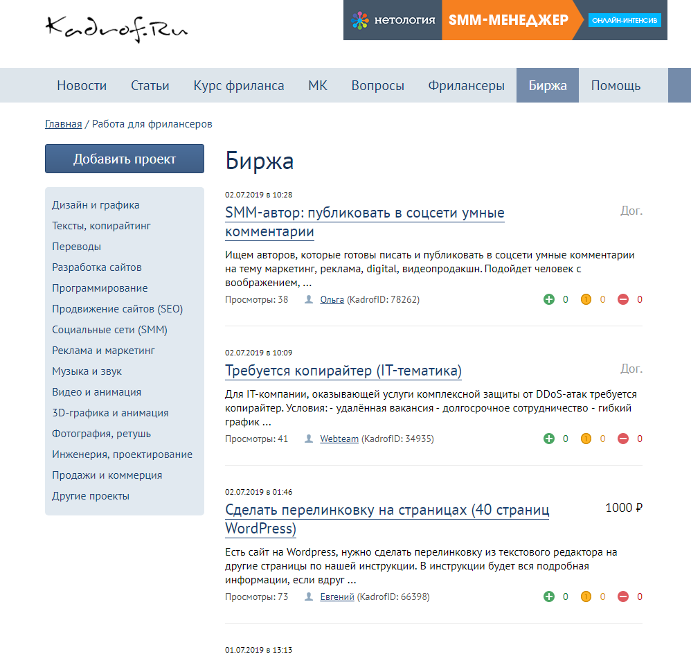 - Площадка для поиска заказов и сообщество фрилансеров на Kadrof.ru